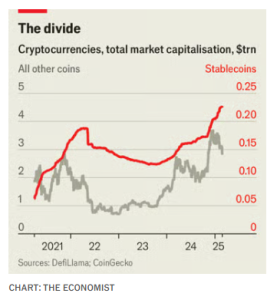ところが不思議なことに、ステーブルコインの価値は、過去12カ月で46%も上昇し、総額が1740億ドルに達している。これはアメリカでトランプ政権が今年7月に「ジニアス法」を通過させて、仮想通貨の規制を緩めたせいだといわれているが、では、ステーブルコインも同じように投機目的の仮想通貨になってしまったのだろうか? なぜそんなことが起こったのだろうか? そしてそれは回避できないことだったのか? まず、ティロールの投稿の中心的な警告の部分を読んでみよう。